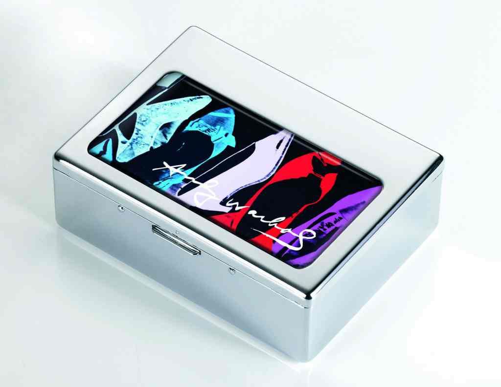 Die Lieferung erfolgt in der abgebildeten Andy Warhol Personal Accessoires Geschenkbox, deren Design auf Warhols Werken basiert, mit Info-Broschüre und der limitierten Utensilienbox.